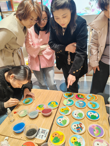 在文脉·河东书房,工会主席韩敏、副主席陈新强与女职工一起体验掐丝珐琅非遗技艺,并为大家送上节日的关怀与祝福。在工艺老师的指导下,大家从最初的生疏,渐渐沉心静气,专注学习掐丝、点蓝、固色等技艺。“你看我这条线走得直吗?”“快帮我看看颜色怎么搭配?”欢声笑语间,一幅幅精美的珐琅画逐渐成型。大家互相品鉴、满心欢喜,在感受非遗魅力的同时,也陶冶了情操,舒缓了压力。
