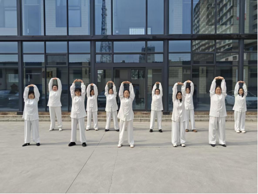 机关大院里,女职工们迎着晨光,练习八段锦。大家身着舒适的太极服,整齐列队,随着舒缓的音乐抬手、展臂、俯身……在一招一式中舒展筋骨、调息凝神,通过传统养生功法强健体魄、放松心情,展现出蓬勃的朝气与活力。